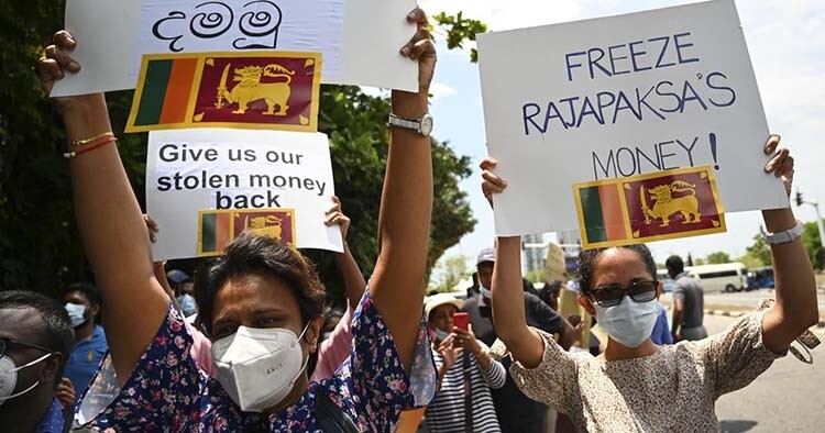 Miután a zavargások miatt elmenekült az országból, Rajapaksa azt állította, hogy egy Nemzetközi Valutaalap (IMF) mentőcsomag volt az egyetlen lehetőség